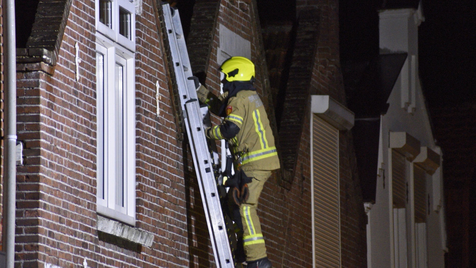 Ter plaatse bleek de situatie echter mee te vallen, waardoor de hoogwerker niet meer hoefde door te rijden. Een brandweerman is met behulp van een ladder het dak opgegaan om de schoorsteen te inspecteren.