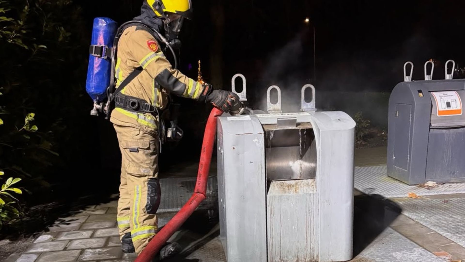 De melding kwam rond 22.00 uur binnen bij de meldkamer. Brandweerlieden hebben de container vervolgens gevuld met water om het vuur volledig te doven. Daarna kon het sein ‘brand meester’ worden gegeven.