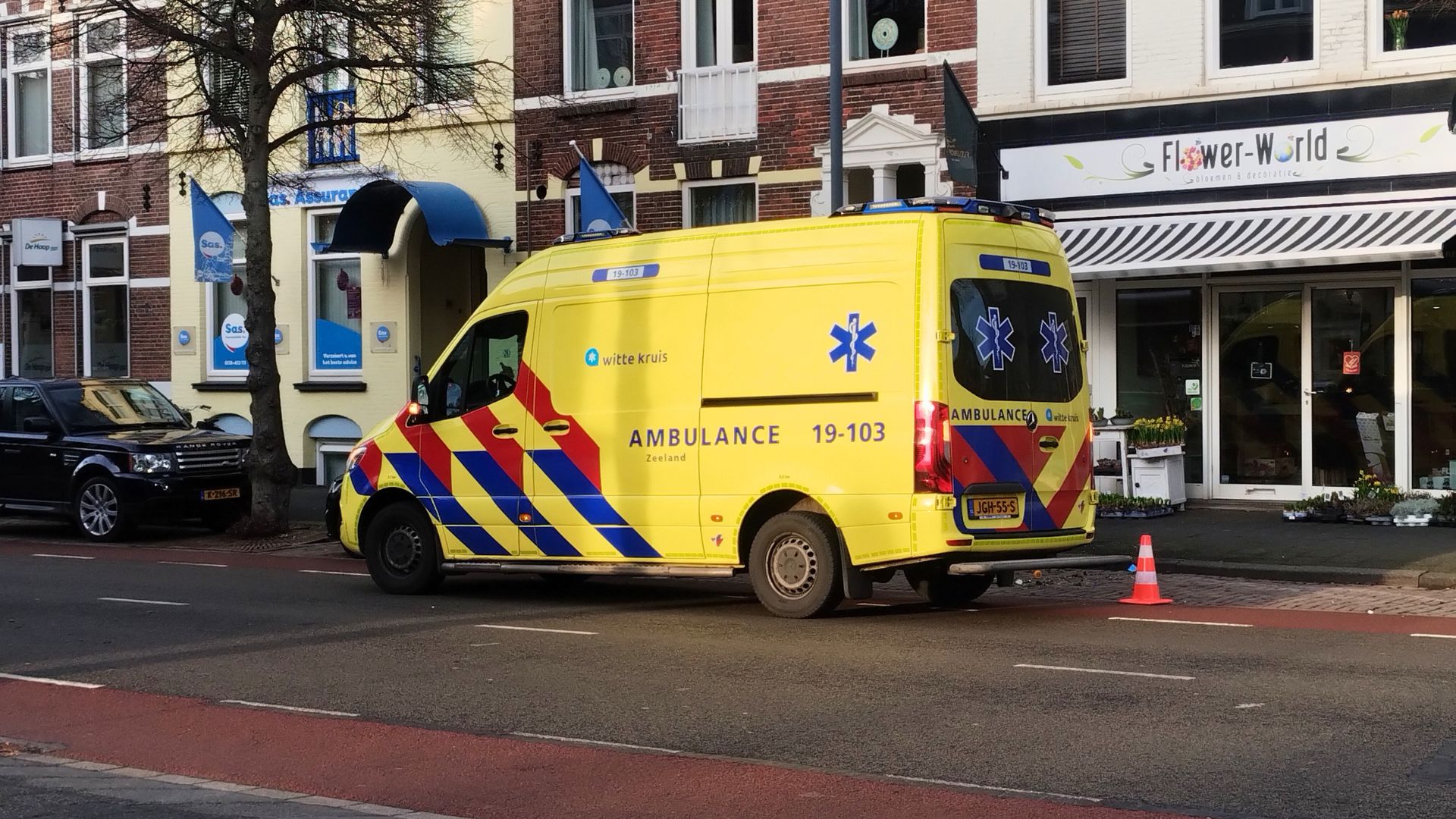 De fietser ging omstreeks half vier onderuit, tussen de snackbar en het makelaarskantoor, naar het zich liet aanzien zonder dat hij aangereden werd. Iemand van een bedrijf uit de buurt schoot te hulp. Ook twee medewerkers van Handhaving verleenden assistentie. Een ambulanceteam behandelde de ongelukkige fietser, hij stapte na enige tijd de ambulance uit met een verband op zijn hoofd en werd met fiets en al naar een zorgcentrum aan de andere kant van de Badhuisstraat gebracht.