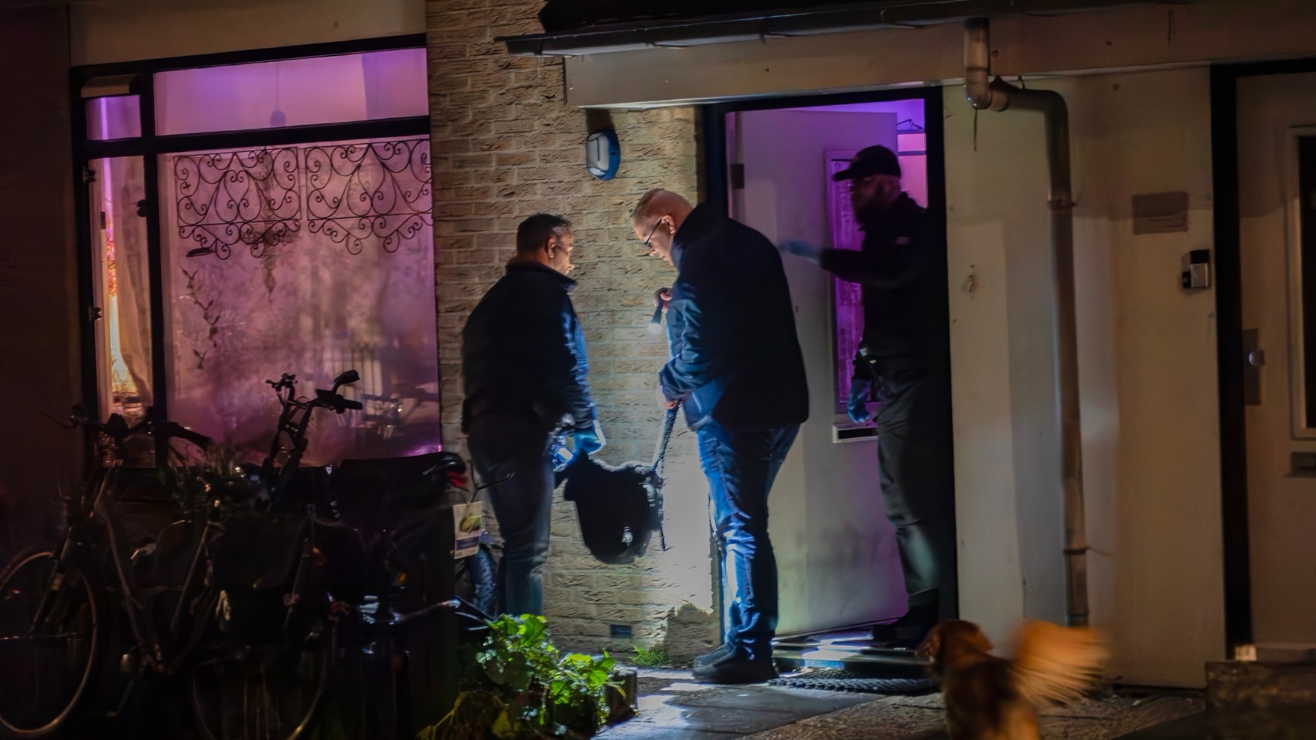 De agenten zochten bijna anderhalf uur met zaklampen op de begane grond van de woning, de bovenverdieping en buiten in de voortuin. Ze bekeken ondermeer een fatbike en fouilleerden een vrouw die naar binnen wilde. Daarbij werd er gesproken over sigaretten. Rond half elf vertrok het gezelschap.