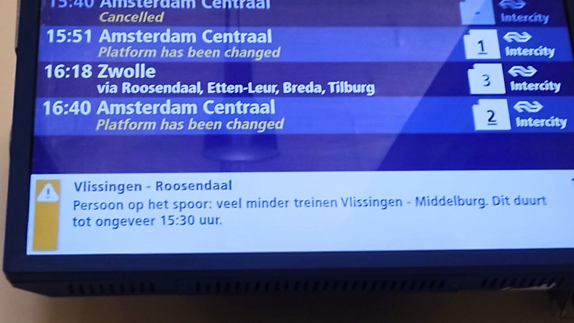 Drukte op het NS-station Vlissingen maandagmiddag, er vertrokken geen treinen, iemand dreigde bij de spoorwegovergang op de Oude Veerhavenweg het spoor te betreden.
