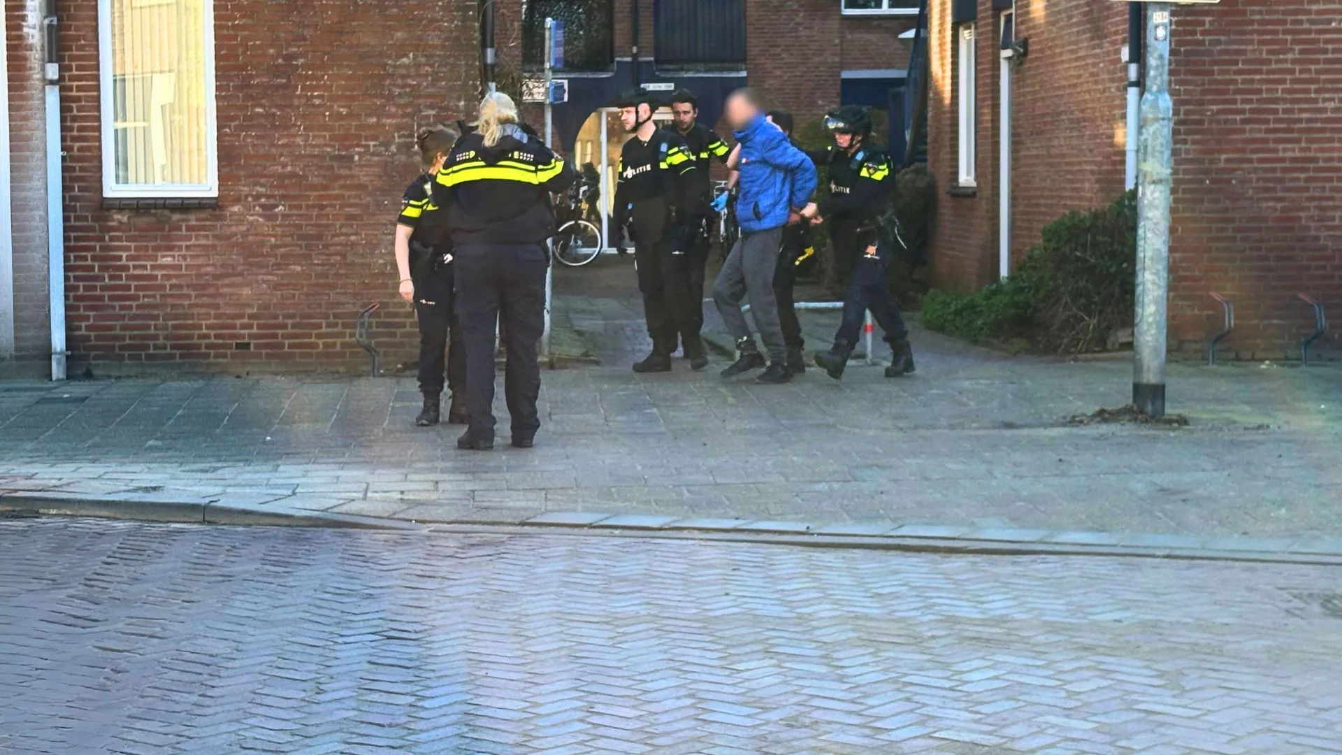 Rond 10.30 uur ging de politie over tot actie en betrad zij het appartementencomplex door de deur van een woning in te beuken. Even later werd een man geboeid naar buiten gebracht en in een politieauto afgevoerd. Volgens een politiewoordvoerster is de man overgebracht naar een politiecellencomplex, waar hij later zal worden verhoord. Of in de woning waar de man werd aangehouden een wapen is aangetroffen, kon de zegsvrouw nog niet zeggen. De politie heeft de zaak verder in onderzoek.