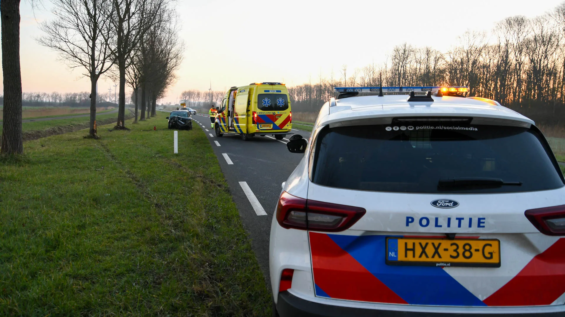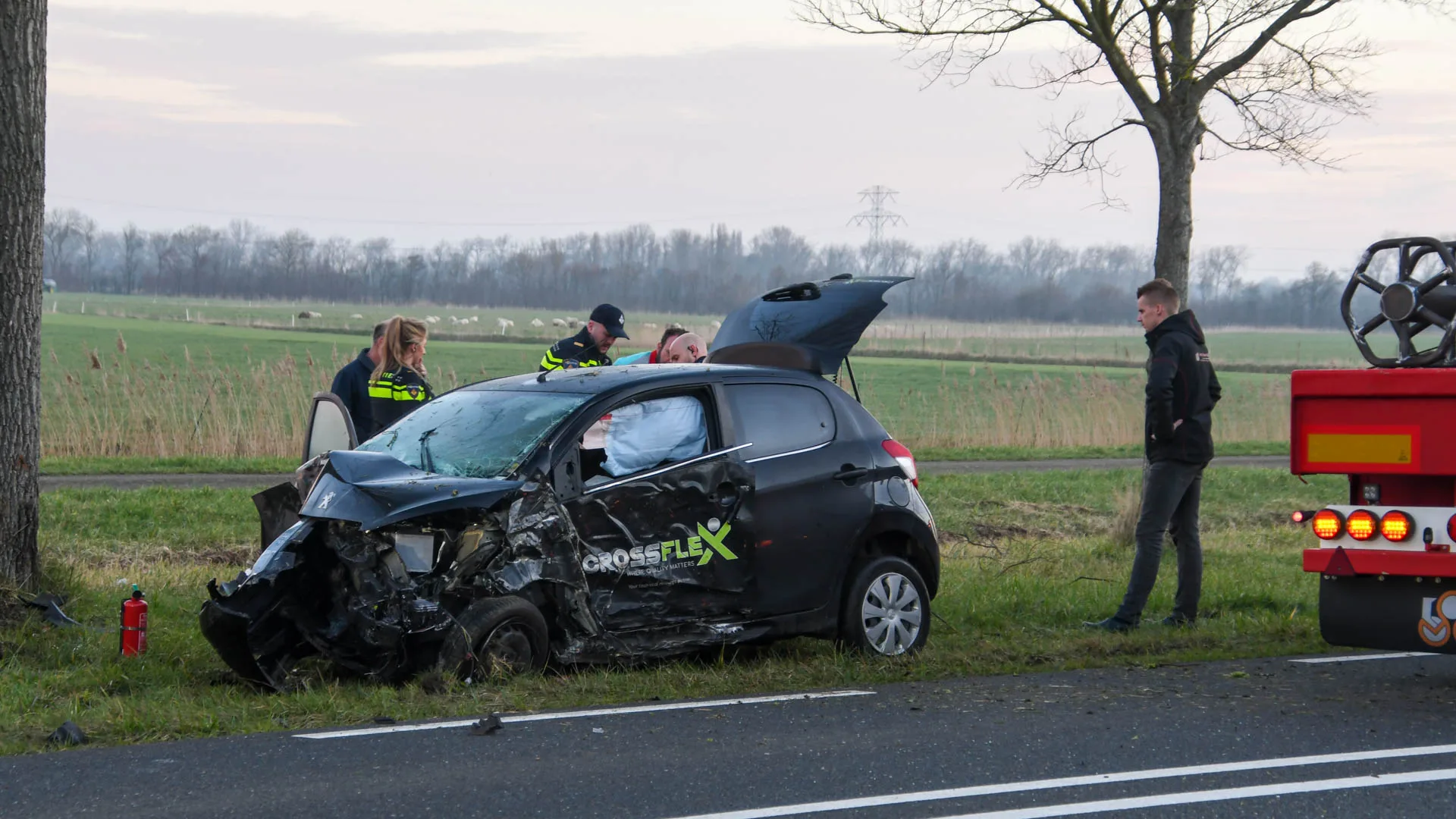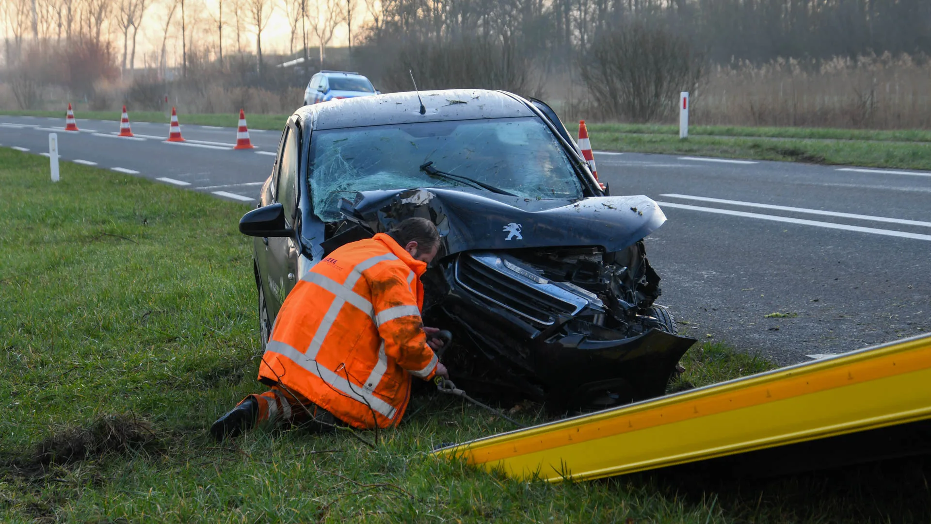 De bestuurder liep verwondingen op en is na stabilisatie in de ambulance met spoed naar het ziekenhuis gebracht. De brandweer controleerde het voertuig op het lekken van olie of benzine. De politie regelde het verkeer totdat een wegbeheerder van de provincie ter plaatse was.