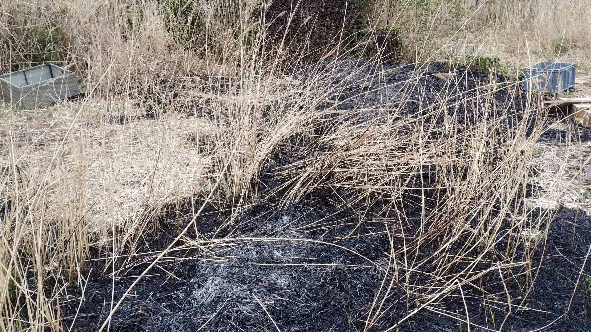 Bluswerkzaamheden waren niet meer nodig. Wel bleek een stuk grond van ongeveer vijf bij twee meter door de brand zwartgeblakerd te zijn. Op het terrein ligt veel zwerfafval; mogelijk is dit door onbekenden in brand gestoken, waarna ook het verdorde gras vlam vatte.