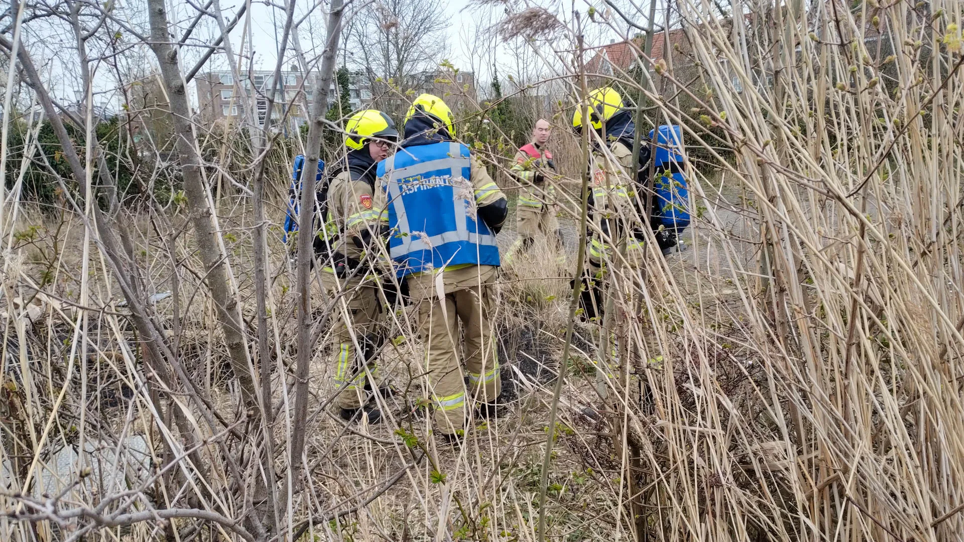 Bluswerkzaamheden waren niet meer nodig. Wel bleek een stuk grond van ongeveer vijf bij twee meter door de brand zwartgeblakerd te zijn. Op het terrein ligt veel zwerfafval; mogelijk is dit door onbekenden in brand gestoken, waarna ook het verdorde gras vlam vatte.