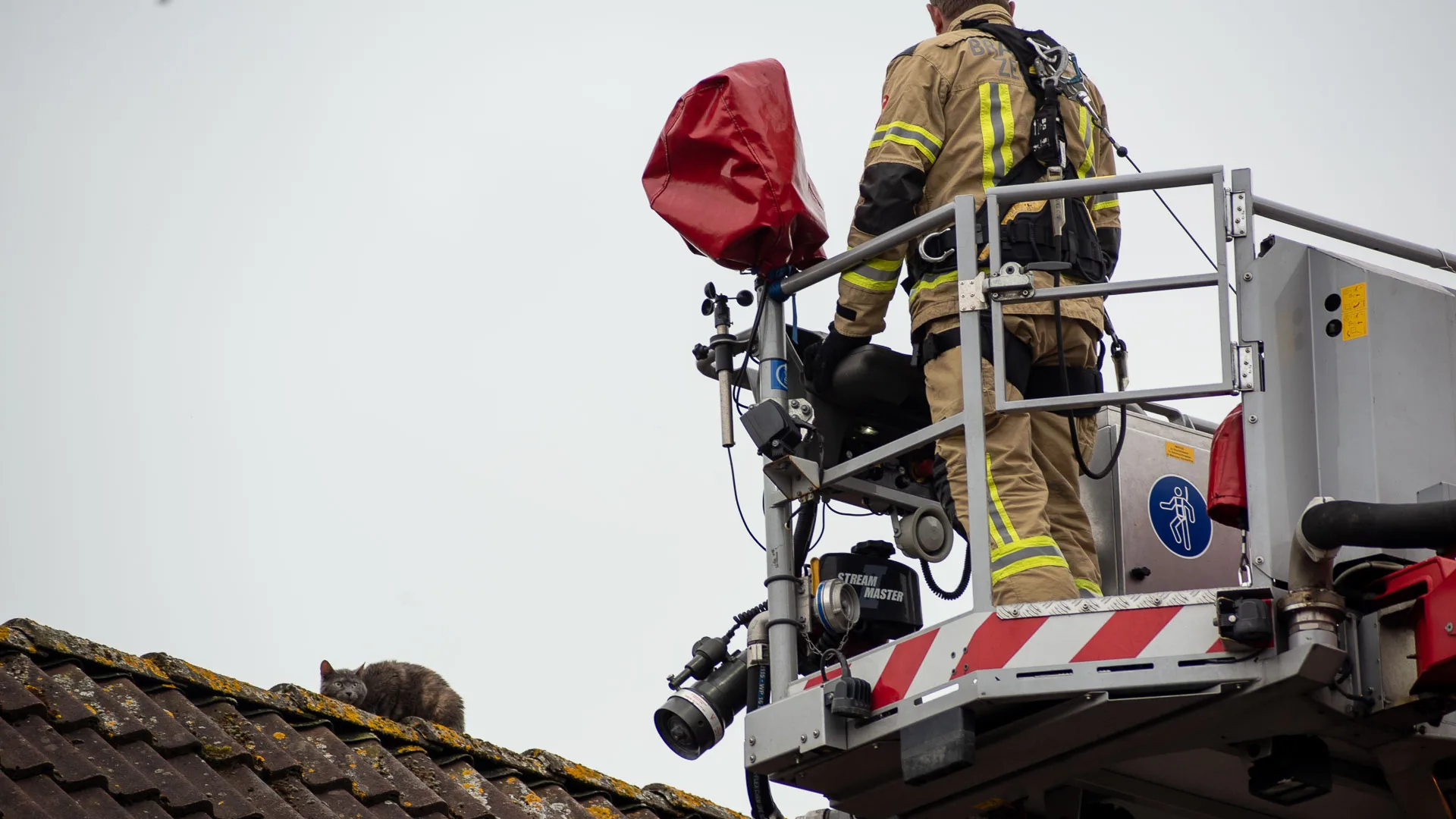 De brandweer van Vlissingen is aan het einde van de middag uitgerukt om een kat van het dak van een blok met rijtjeswoningen in de Bonenburg te halen. Het dier bleek al enige tijd vermist te zijn en zat vermoedelijk al zeker een dag op het dak.