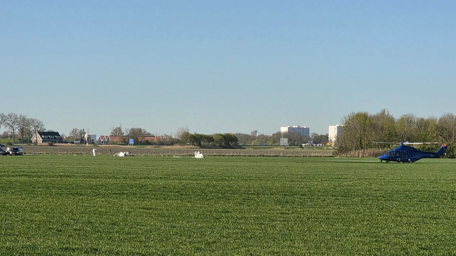De politiehelikopter landde rond 10.00 uur op de locatie van de crash om specialisten van de luchtvaartpolitie af te zetten. © Foto: Brandon Bakker / 112Vlissingen-Souburg.nl