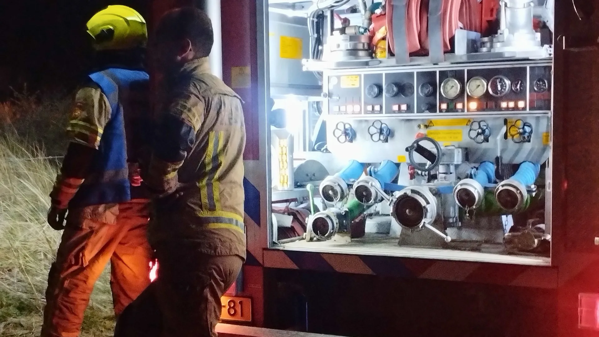 Eerder op de avond, ruim een uur voor deze melding, werd de brandweer eveneens met spoed opgeroepen voor een mogelijke duinbrand bij het Nollehoofd in Vlissingen. Brandweer en politie voerden in de omgeving een zoekslag uit (foto onder), maar troffen geen brandhaard aan, wel hing er een duidelijke brandlucht in het gebied.