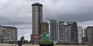 Een wandelaar trof vanmorgen een opvallende groene boei aan op het strand van Vlissingen, ter hoogte van hotel Britannia. Het object is vermoedelijk door de harde wind van afgelopen week losgeraakt.