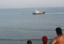 Zeemanshoop naar badstrand voor afgedreven rubberboot