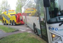 Kuzee bergt gestrande lijnbus vanaf Burgemeester Van Woelderenlaan