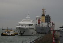 VLISSINGEN - Een bijna zestig meter lang nieuwbouwjacht is vandaag rond de middag aan de grond gelopen bij de Gevangentoren, sleepboten hebben het casco met bouwnummer Amels 18802 omstreeks 13.30 uur afgemeerd in de Buitenhaven, ter hoogte van Finsa B.V.
