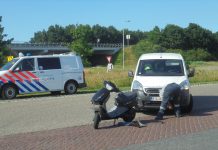 OOST-SOUBURG - Een bestelauto en een scooter zijn vanmiddag met elkaar in botsing gekomen op het bedrijventerrein langs de A58 bij Oost-Souburg.